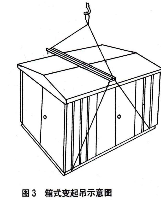 3、 箱式变应采用专用工具底部起吊,如图3所示,注意吊装标记。